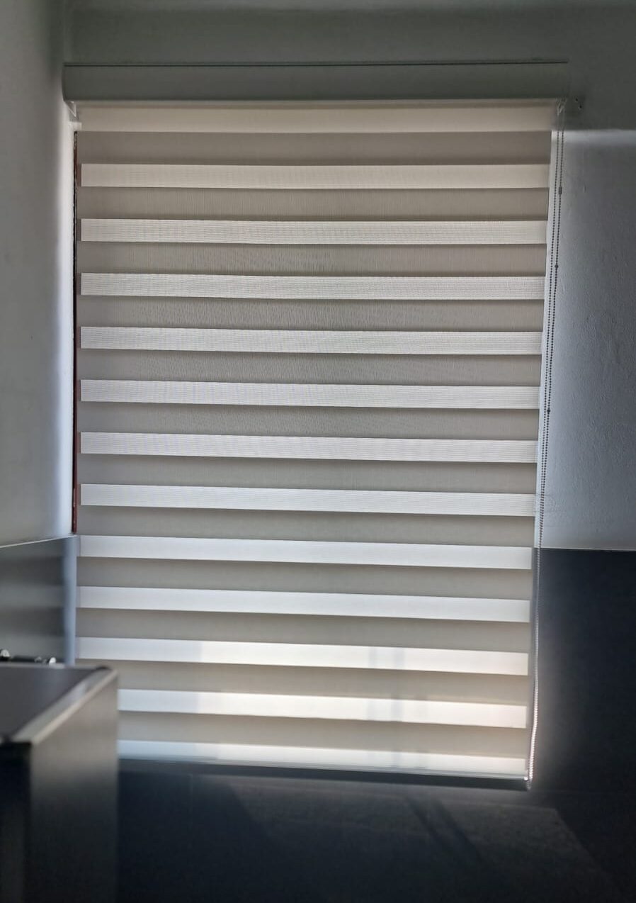 En Simple las cortinas roller DUO, son cortinas roller en telas de franjas de opacidad y visibilidad, entregando doble opción controlada.La lógica de este tipo de cortinas es su tela de franjas dobles (tejido cerrado y abierto) que confluyen en su base por un eje que toma la tela y la hace girar en ella misma logrando traslapes de luminosidad con visibilidad y luminosidad controlada con privacidad.